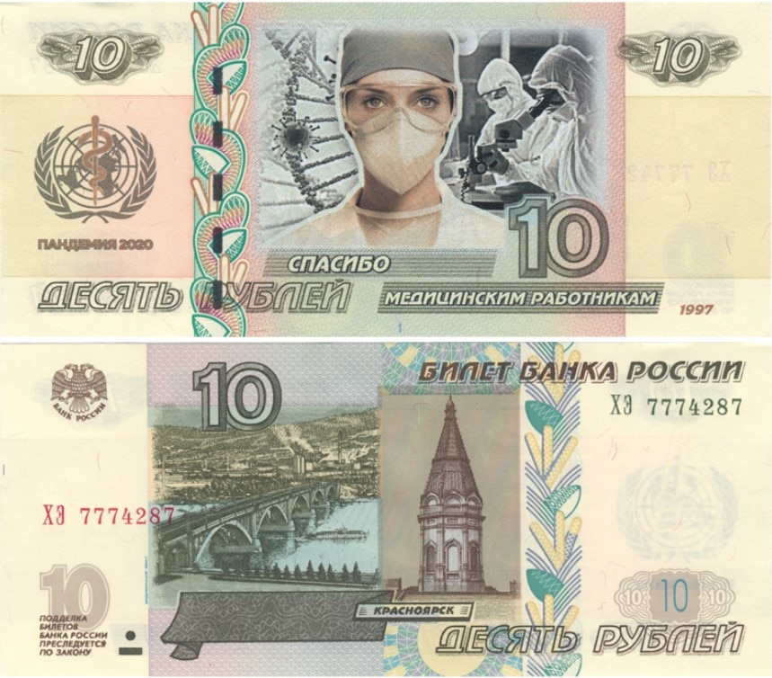 Banknote 10 rubles 1997 thanks to medical workers Russia