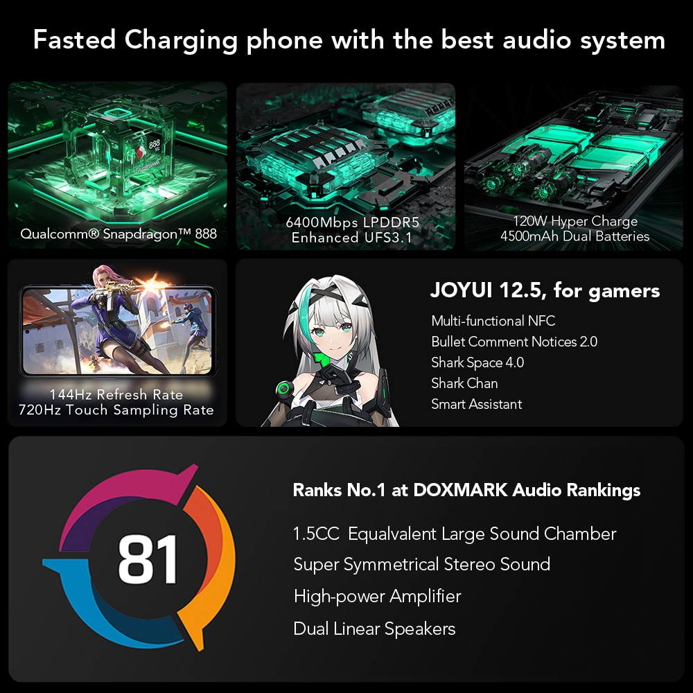 Black Shark 4 Pro Orignal Global Version 5G Gaming Phone Celular 120W Charging Snapdragon 888 Magnetic Pop-Up Triggers 144Hz NFC