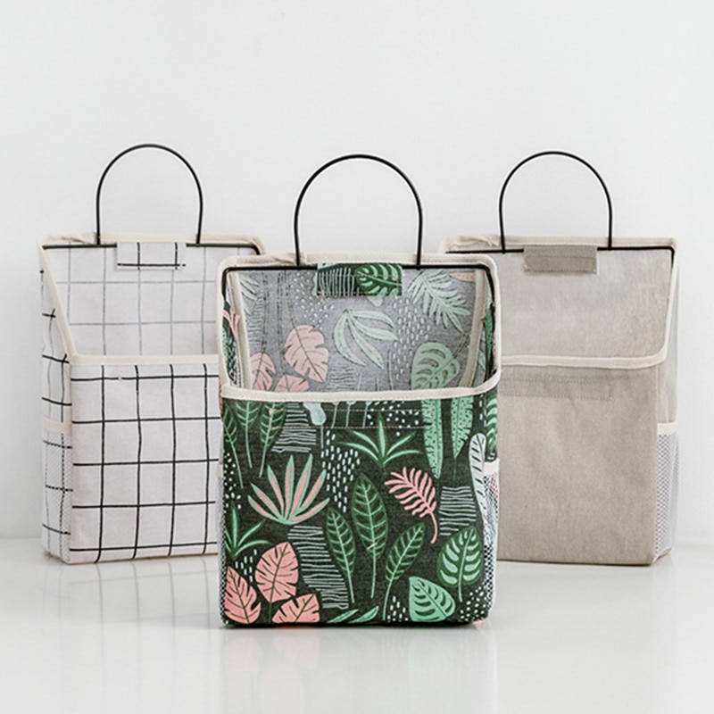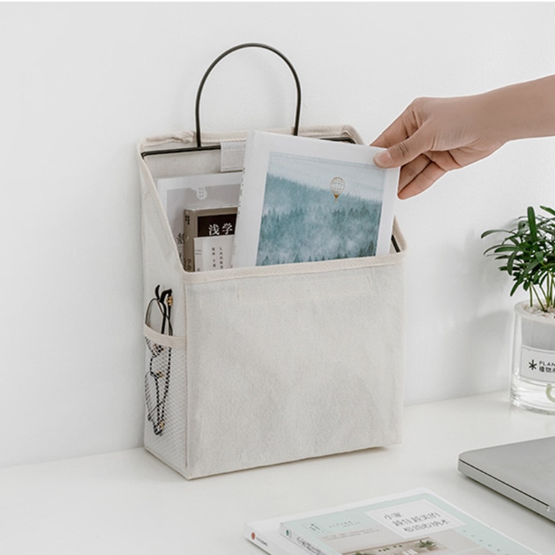 Dormitory Wall Hanging Storage Bag Wall Door Wardrobe Table Top Fabric Cotton Linen Organizer Basket For Books CD Magazine