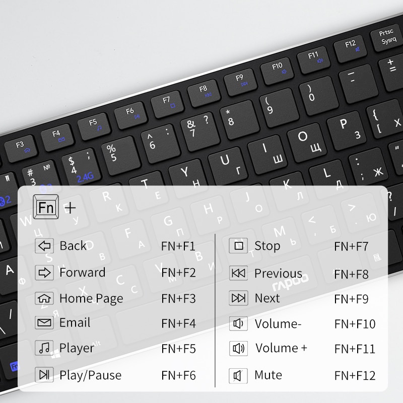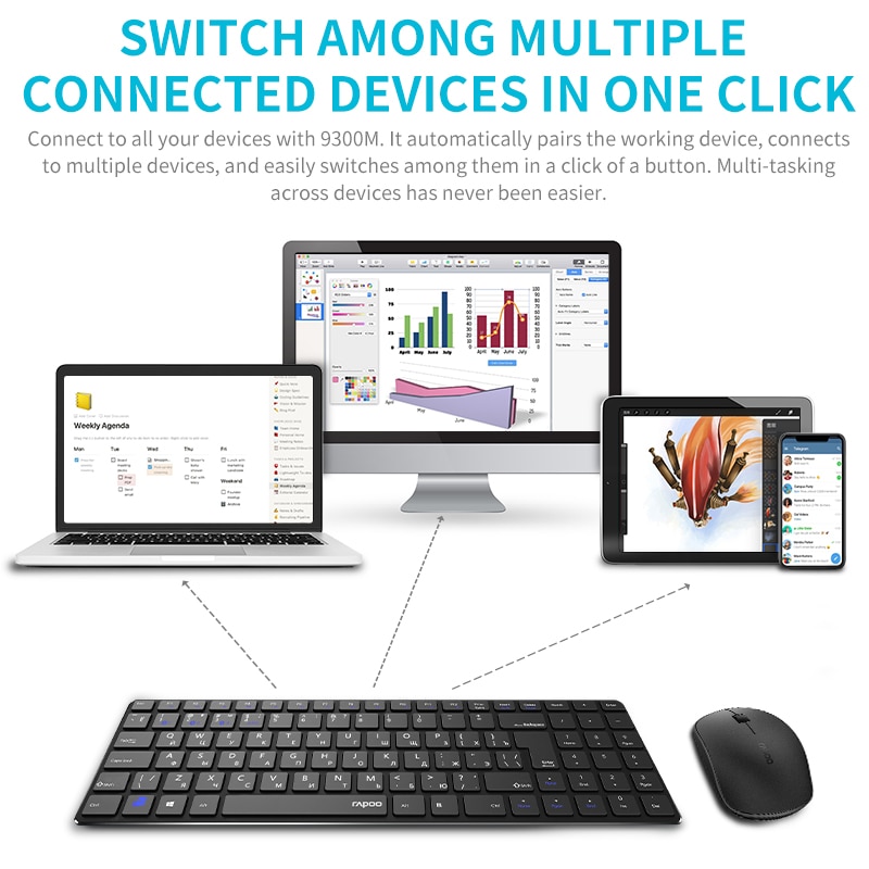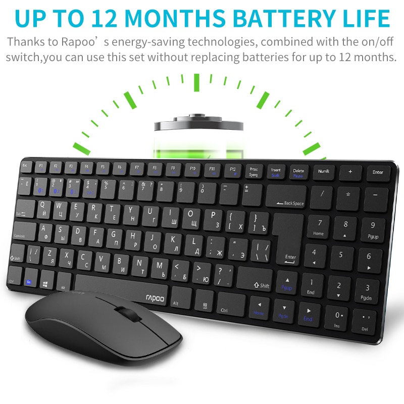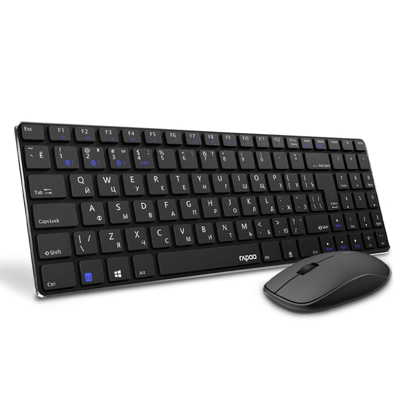 Rapoo 9300M Multi-mode Silent Bluetooth Wireless Keyboard and Mouse Combo Slim Keyboard Optical Mouse English/Russian Keyboard