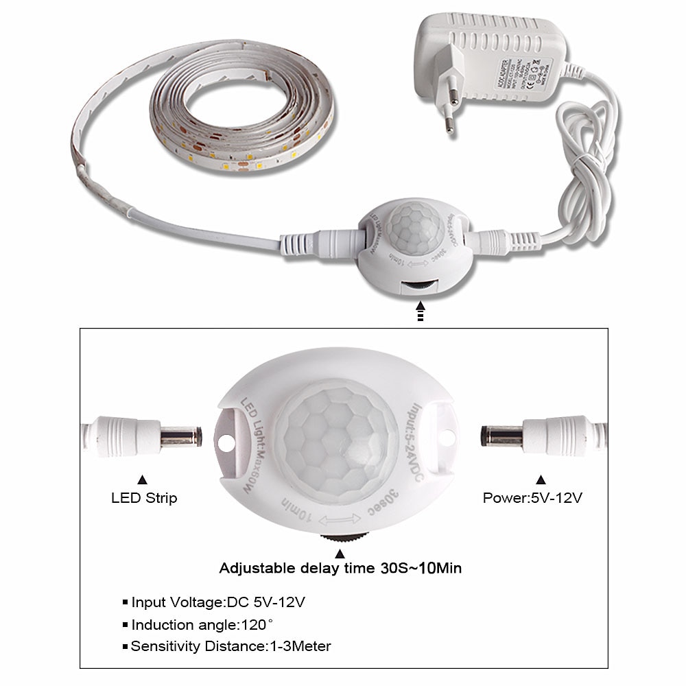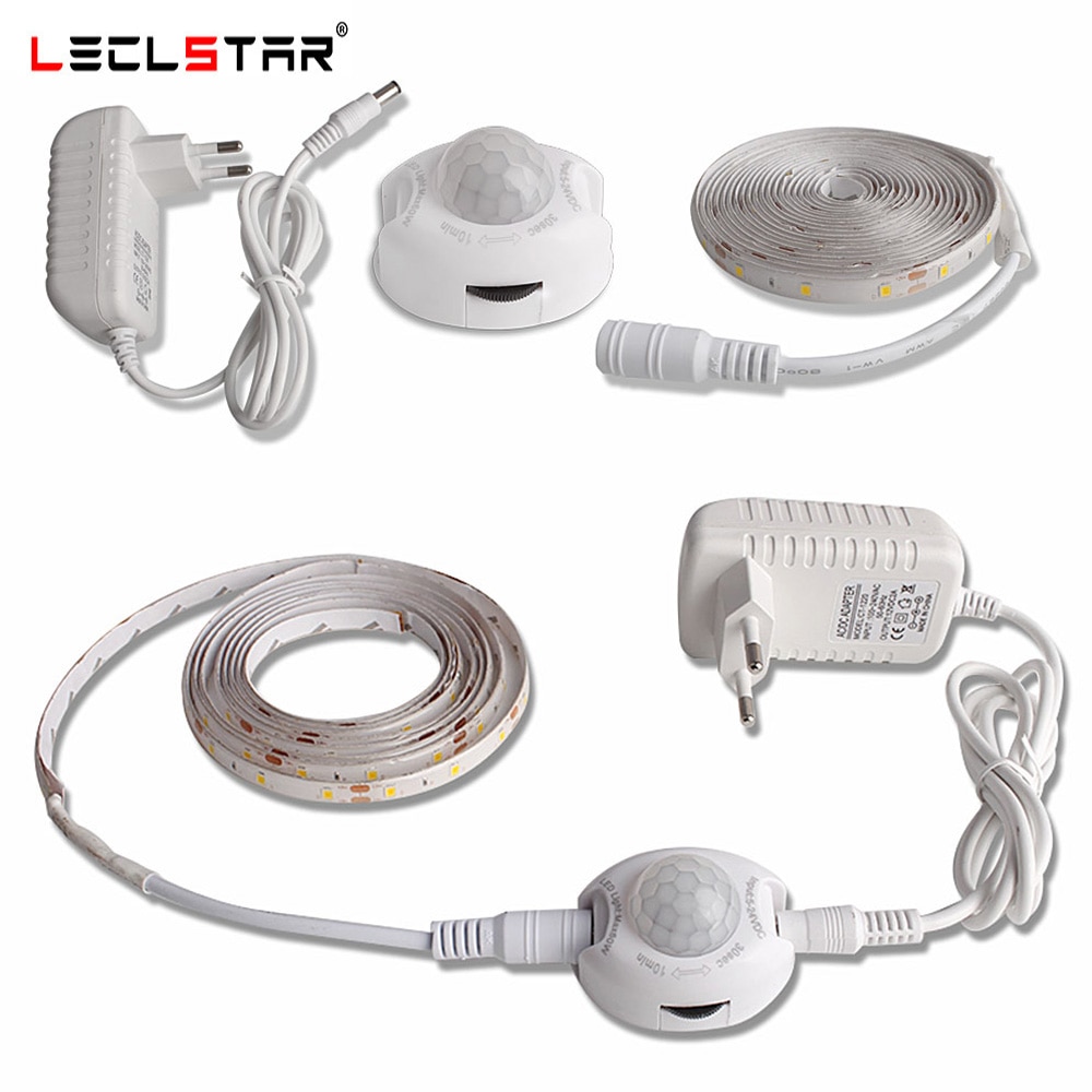 LED Night Light with Motion Sensor 1m 2m LED Strip Waterproof PIR/Light Sensor Night Lamp for Closet Corridor 12V Power Adapter