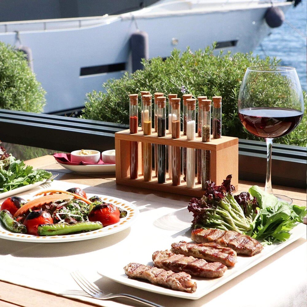 Набір дерев'яних пробірок для спецій + підставка