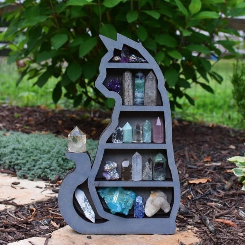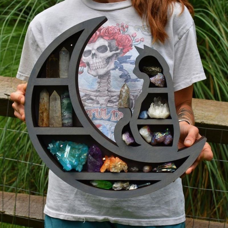 Cat in the Moon Crystal Wooden Shelf Moon crystal shelf cat Home Decoration Ornament Item Storage Makeup Cabinet