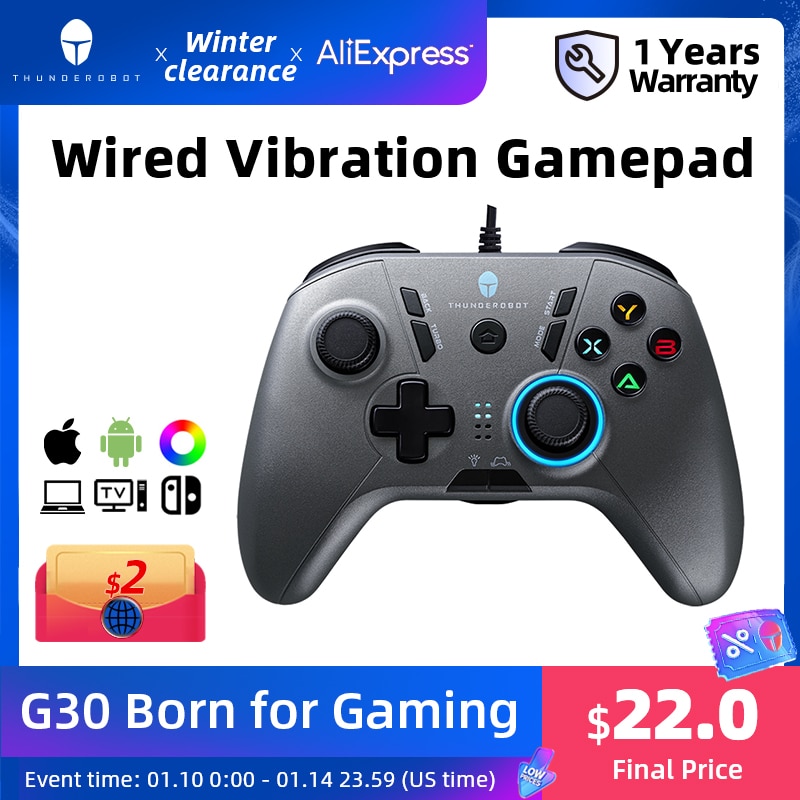 ThundeRobot G30 Wired Vibration Gamepad Joystick Controller for Switch Windows PC PS3 STEAM Phone TV Game Controller Joypad