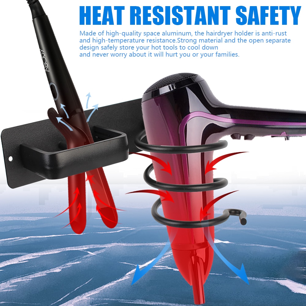 Hair Dryer Holder Organized Rack Wall Mounted Hair Straightener Stand Bathroom Shelf Storage Shelves Accessories Shelves