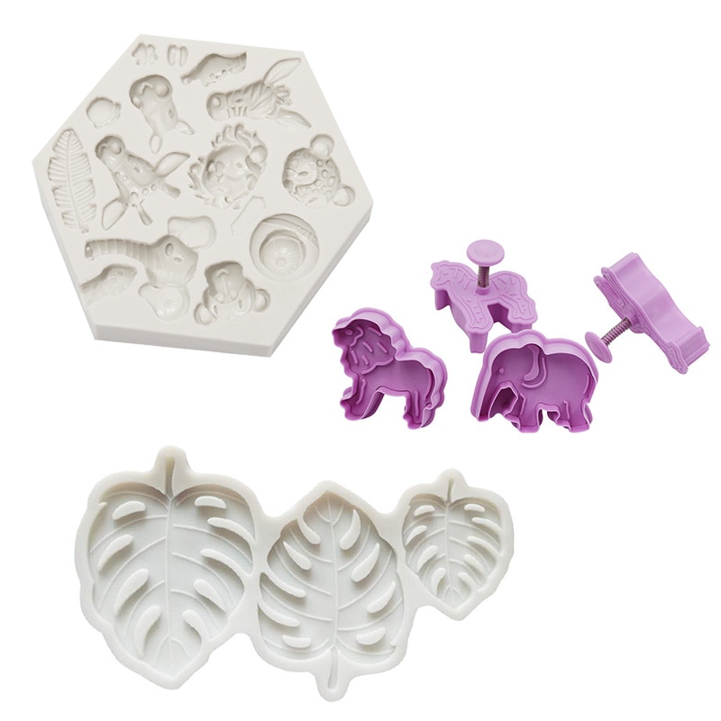 Jungle Safari Animal Silicone Cake Mould 3D Safari Animal Shape Fondant Cake Mousse Baking Mold for Birhtday Party Baby Shower