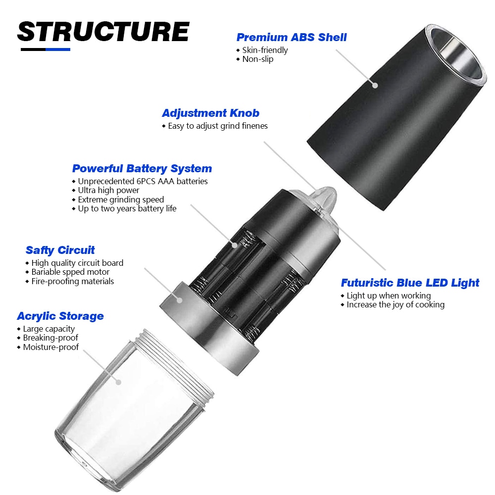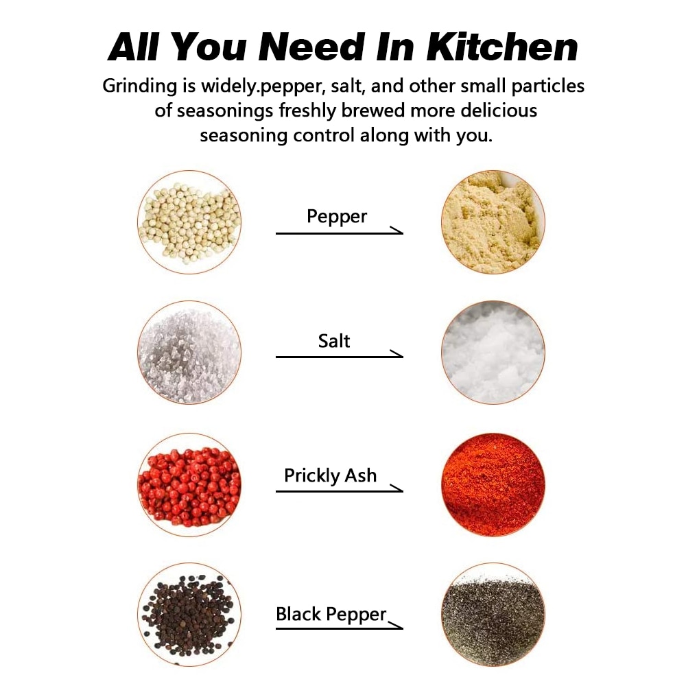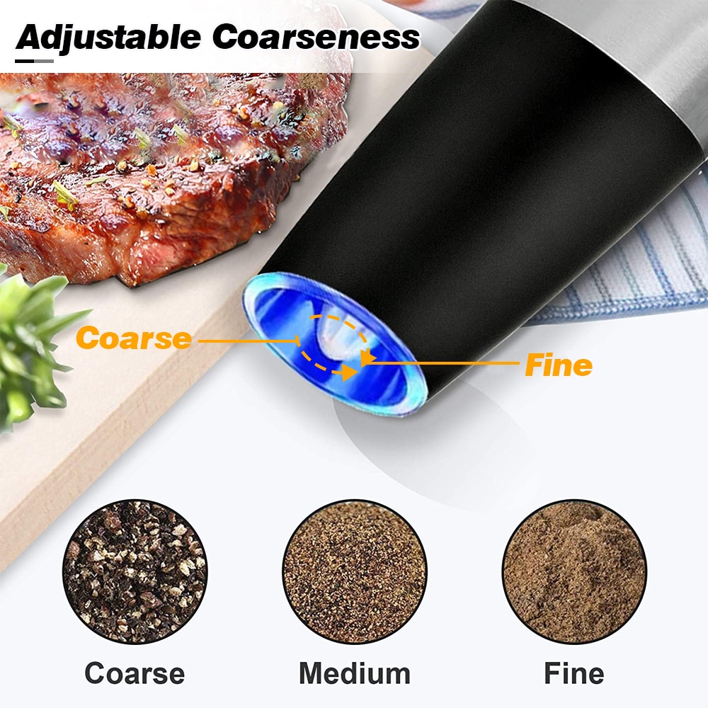 Rodanny Electric Automatic Pepper and Salt Grinders Stainless Steel Gravity Herb Spice Mill Adjustable Coarseness Kitchen Tools