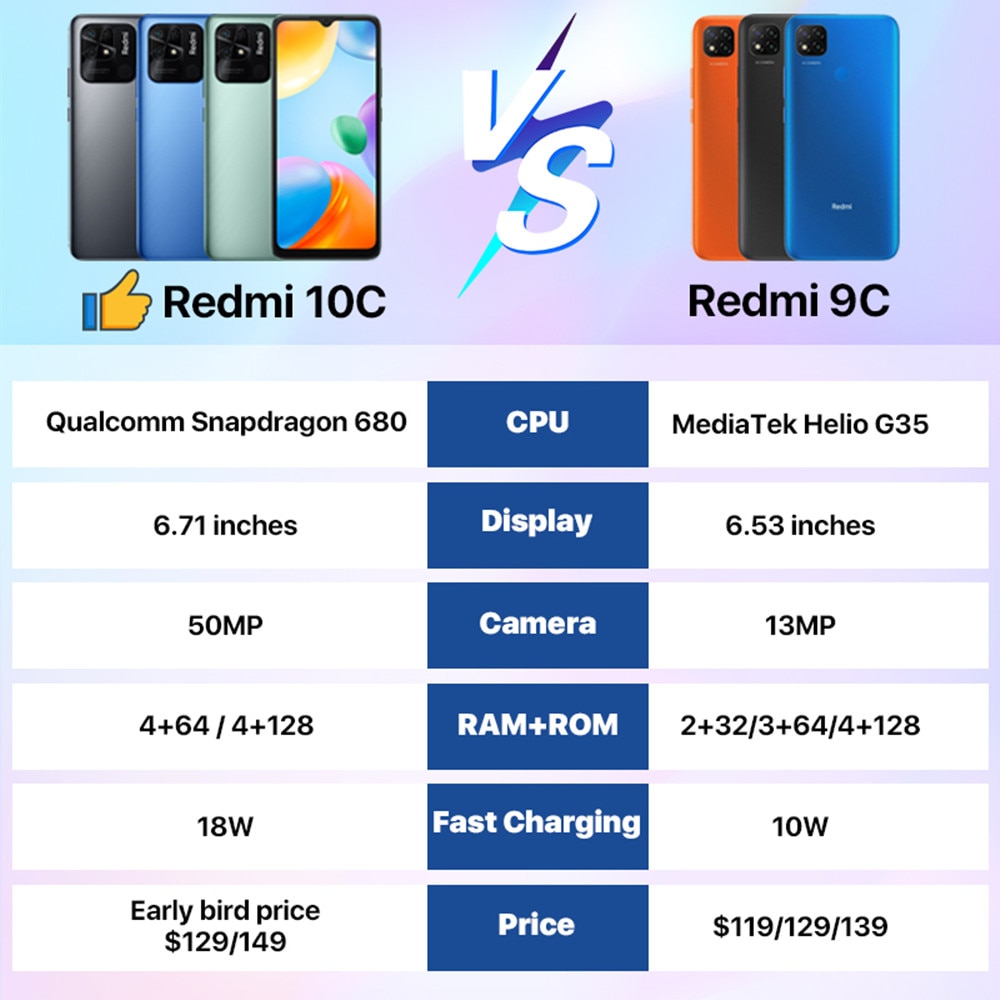 World Premiere Global Version Xiaomi Redmi 10C Smartphone Snapdragon 680 4GB 64GB / 128GB 6.71 "Display Large Mobile 50MP Camera
