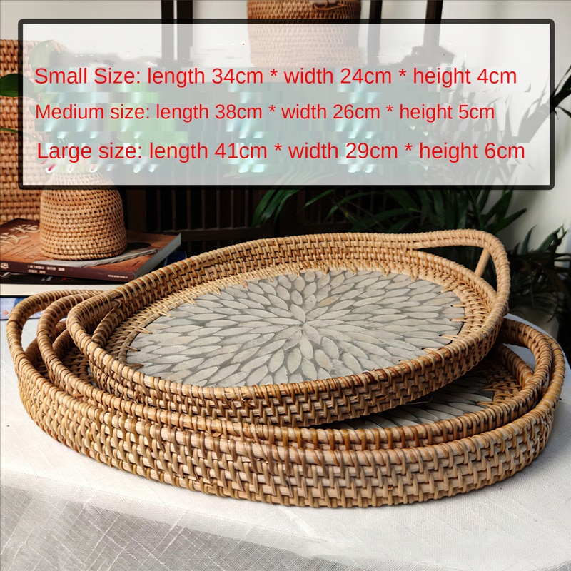 Rattan Basket HandWoven Fruit Storage Breakfast Severing Tray Drinks Snack Coffee Platters Bread Plate Home Tableware Organizer