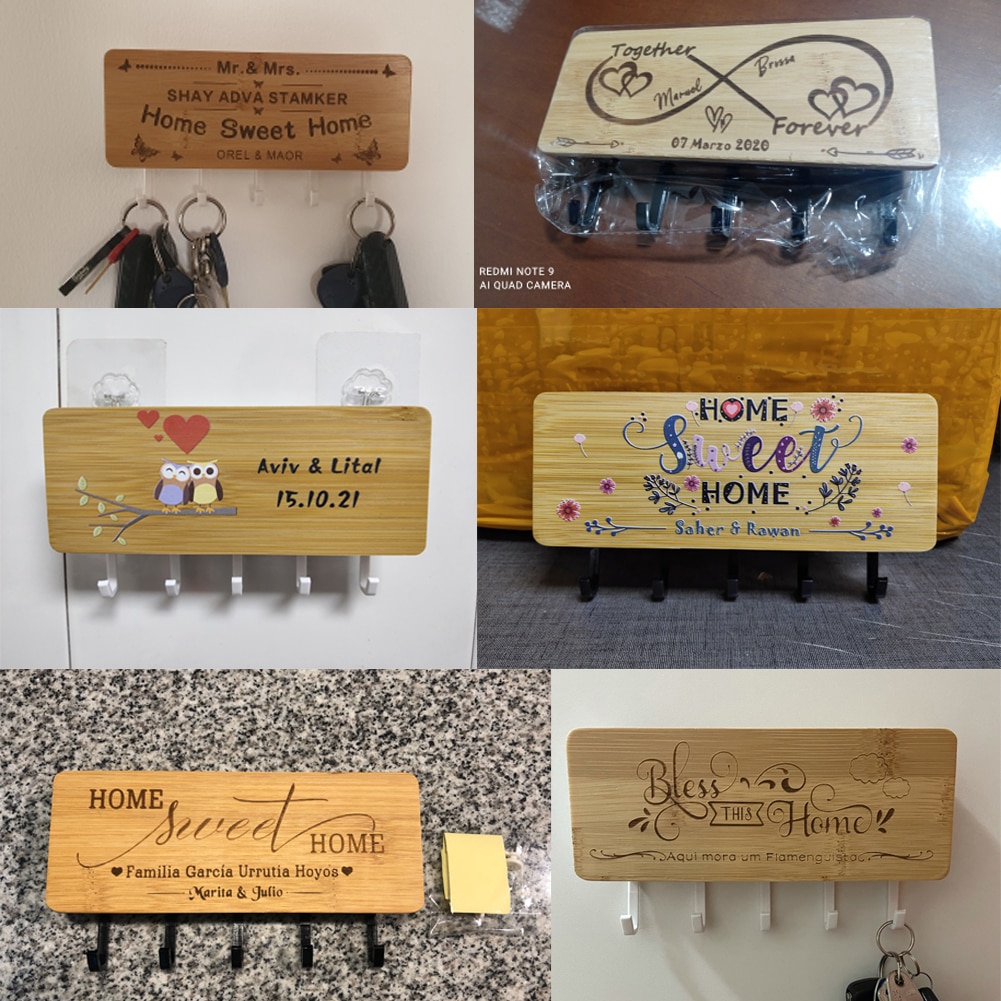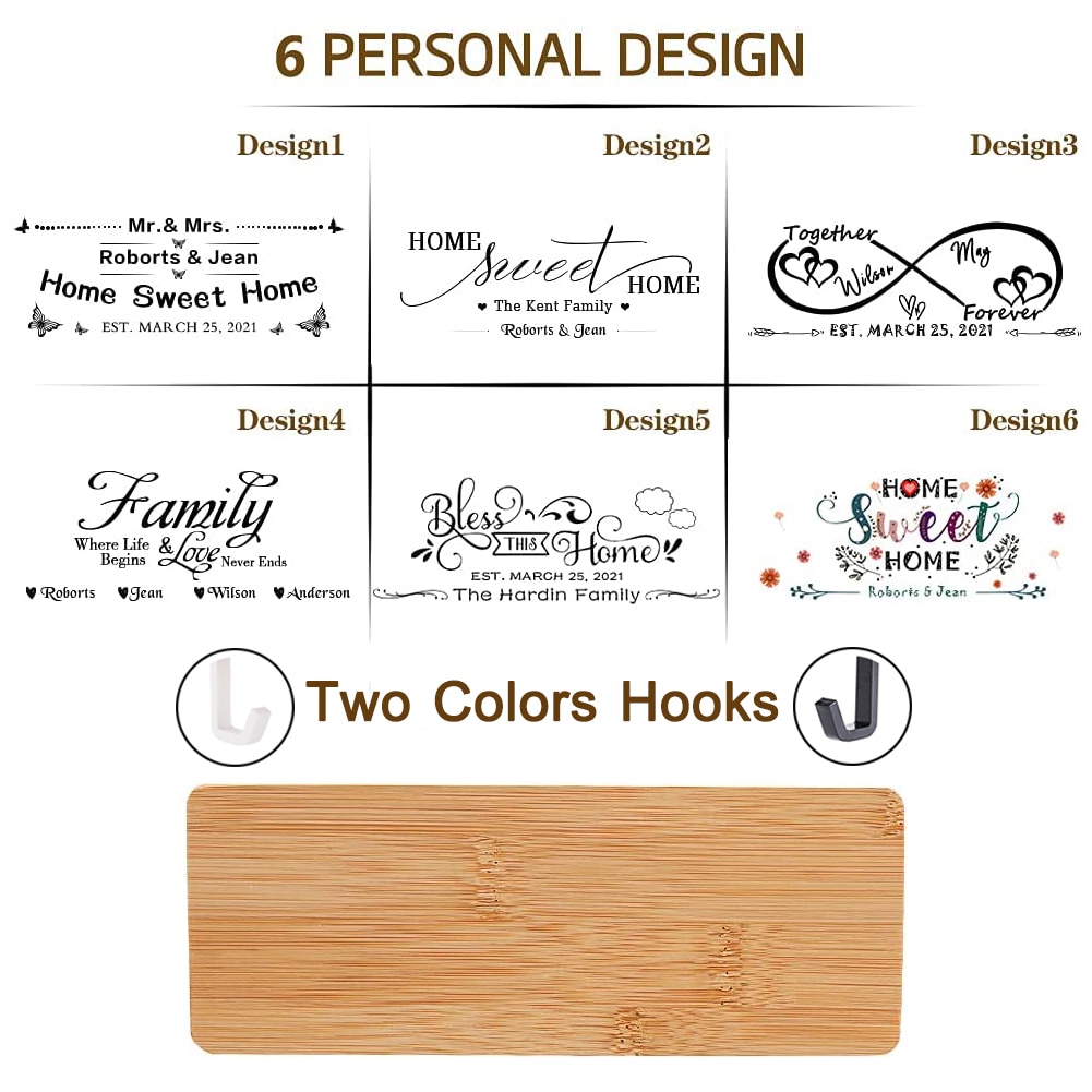 Custom Text Wall Key Hanger Wooden Storage Container Home Door Back Key Hook Personality Decorative Ornaments Black/White Hooks