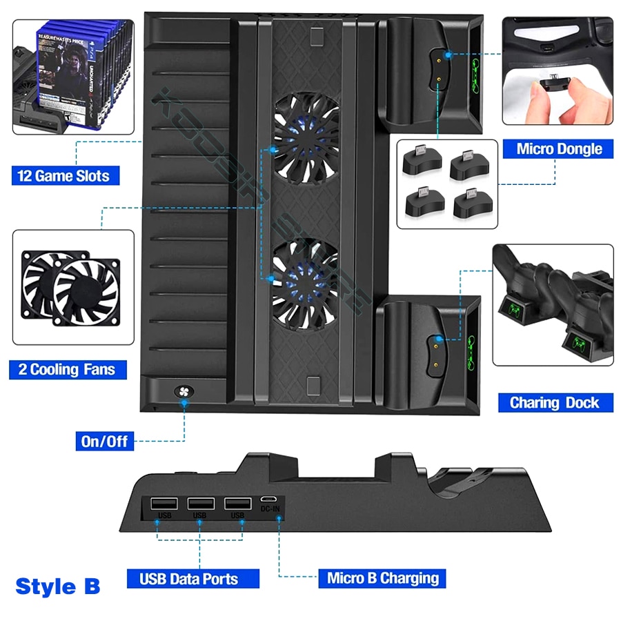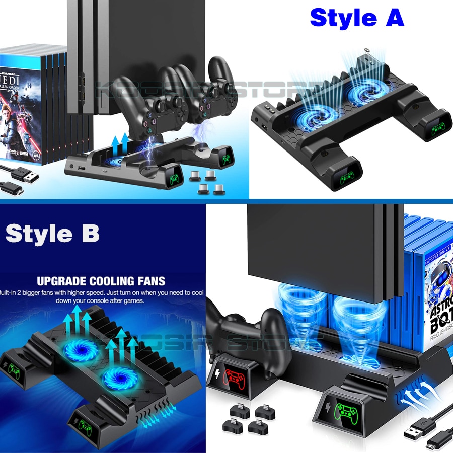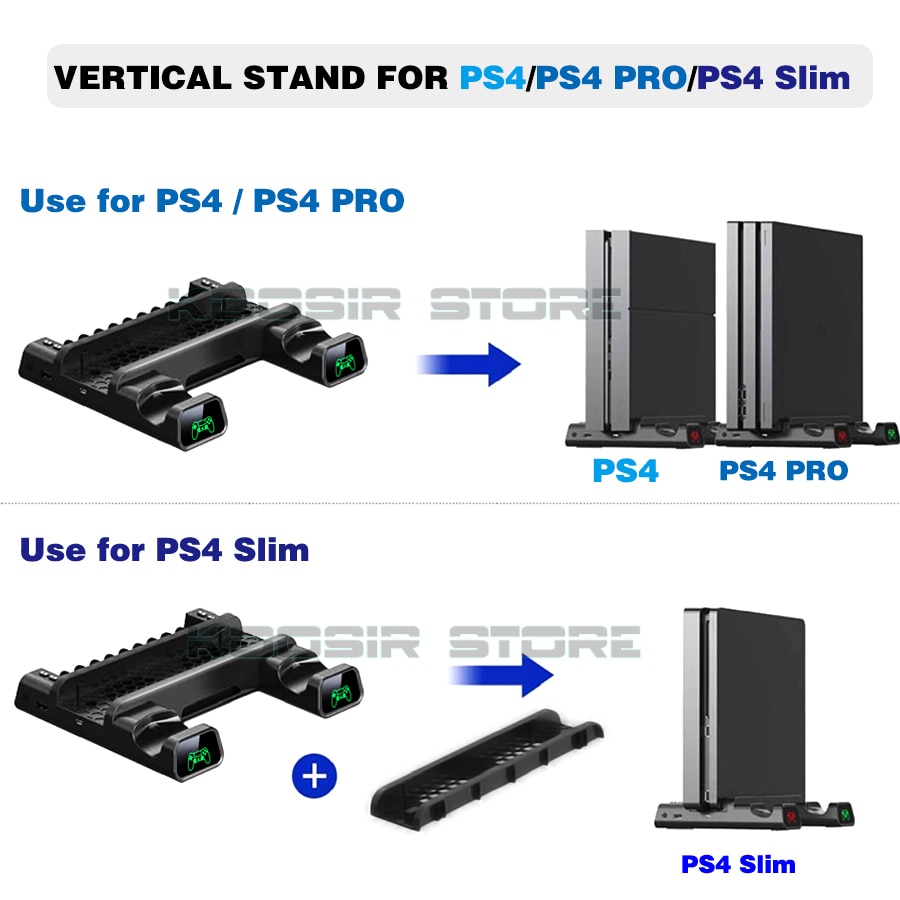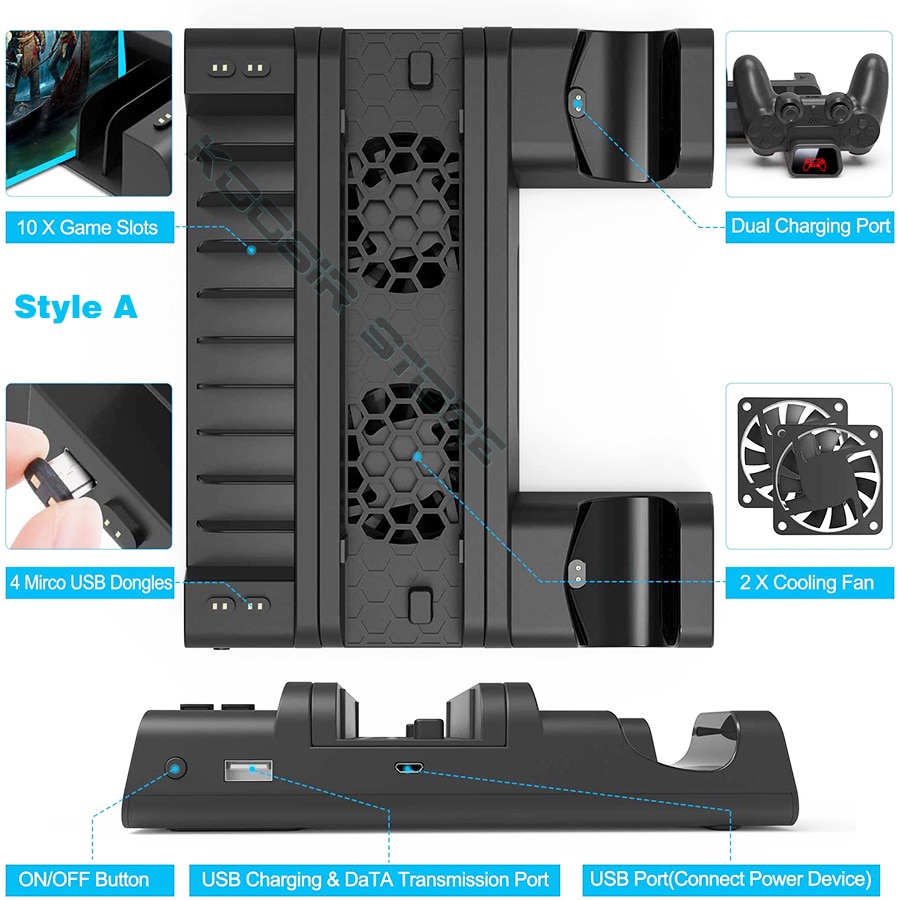 PS4 / PS4 Pro / PS4 Slim Console Vertical Cooling Stand Controller Charging Base 2 Cooler 10 Games Storage for Sony Playstation 4