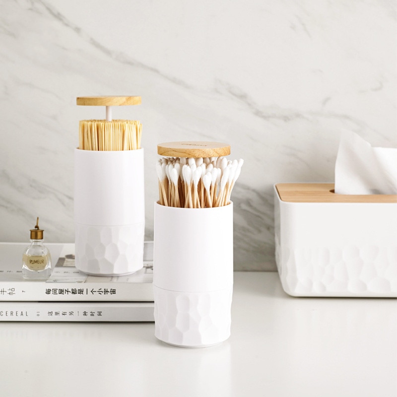 Toothpick Box Cotton Swabs Holder Tooth Pick Automatic Dispenser Press Can Living Room Table Accessories Cotton Bud Container