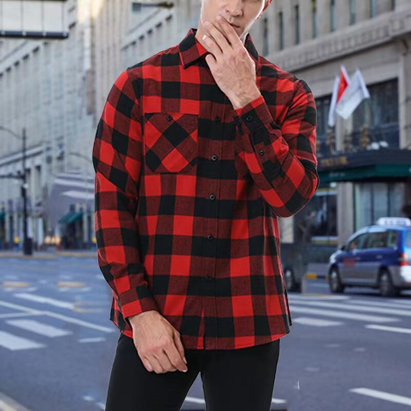 2023 Cotton Heavyweight Retro Vintage Spring Autumn Winter Long Sleeve Buffalo Plaid Flannel Shirt Jacket for Men