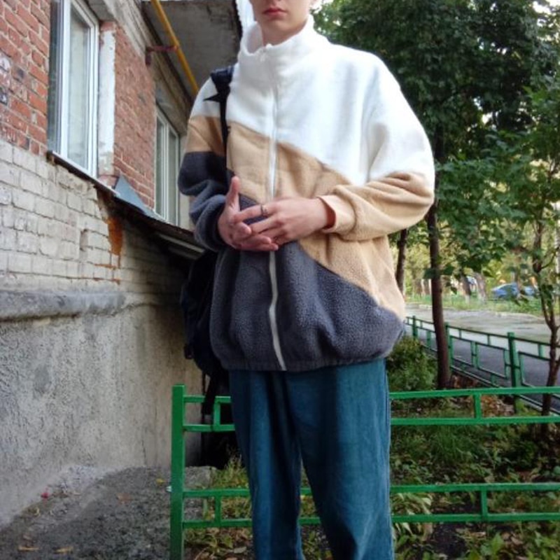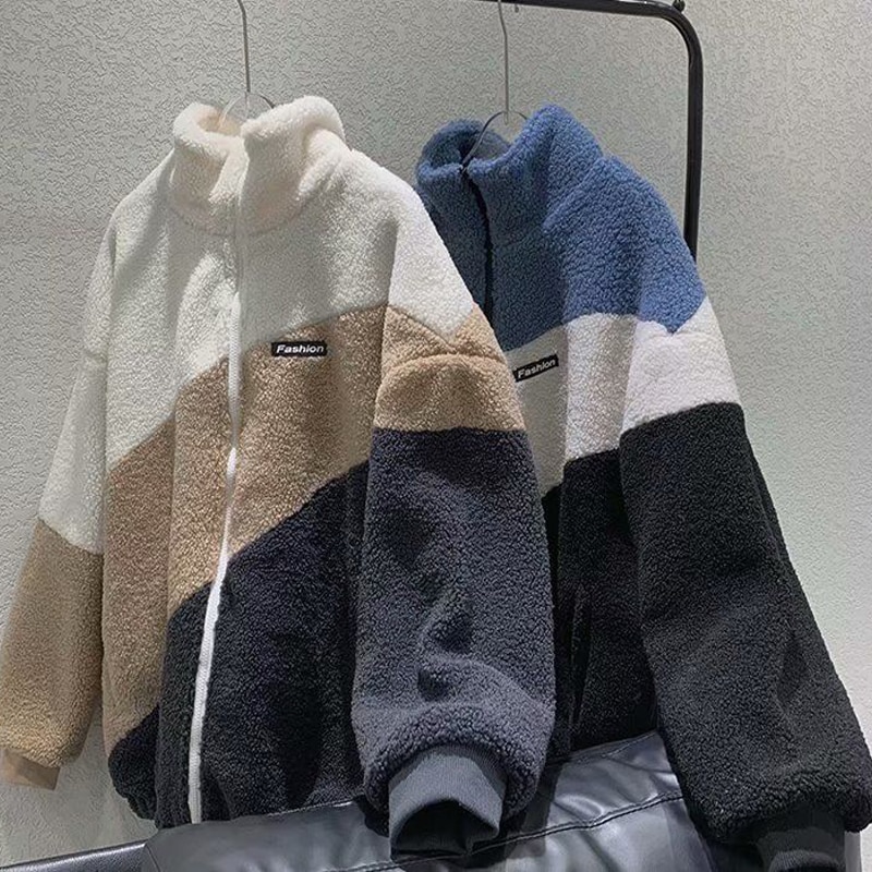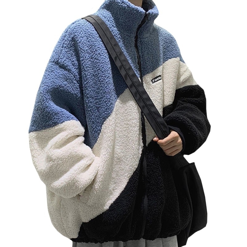 New Product Polar Fleece Winter Casual Men Hoodie Sweatshirt Harajuku Stitching Blue Zipper Keep Warm Long Sleeves Male Pullover