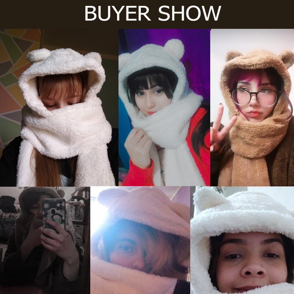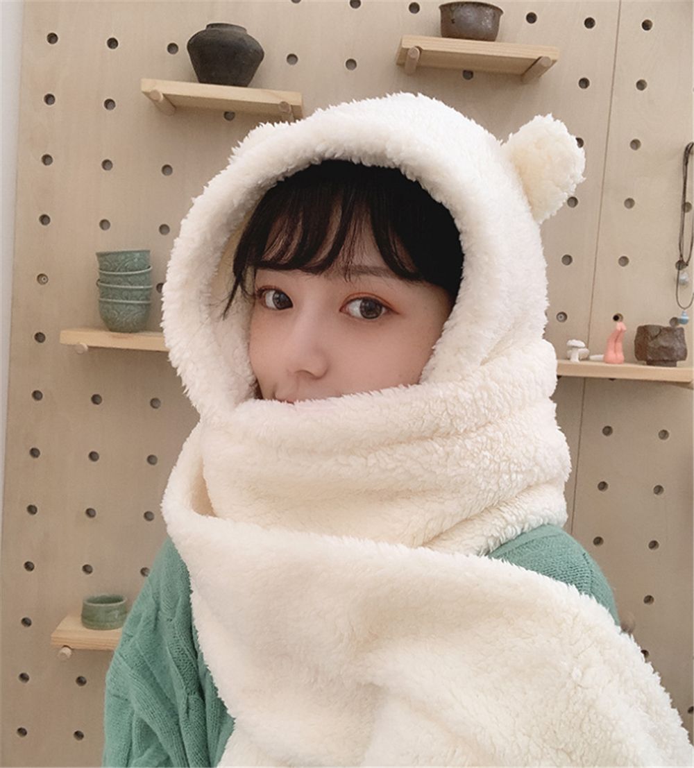 2022 Fashion Winter Women Novelty Beanies Caps Warm Cute Bear Ear Hat Casual Plush Hat Scarf Set Casual Solid Women Caps Present